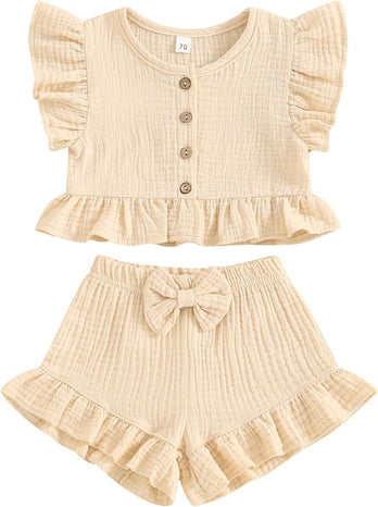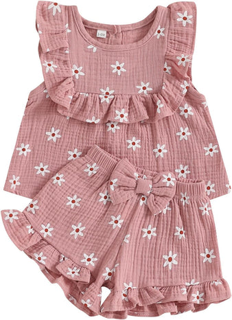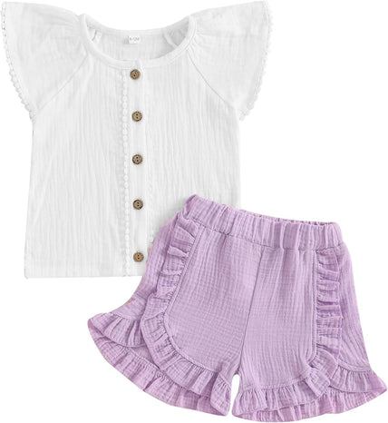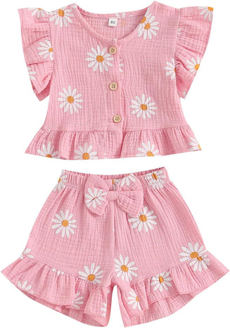 • Size: Toddler short sets, toddler clothing set for girls are suitable for girls aged 6 Months, 9 Months, 12 Months, 18 Months, 1 year old girl clothes, 2 year old girl clothes, 3 year old girl clothes, 4 year old girl clothes. Please check our product size chart in description