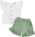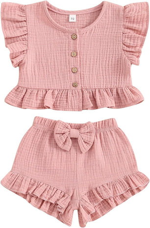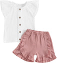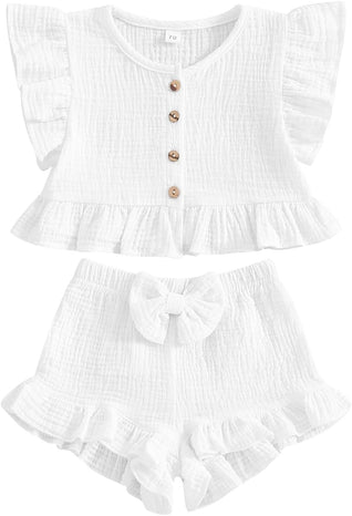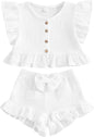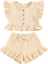 BemeyourBBs Summer Toddler Girl Clothes Baby Girl Ruffle Sleeveless Shirt with Buttons Bow Bloomers Shorts Set Cute Outfits