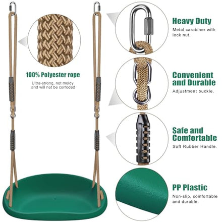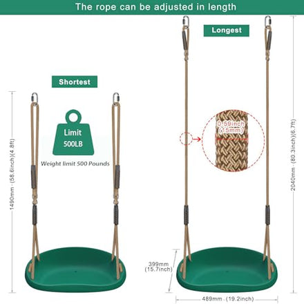• 【Durable and Safe】Made with high-quality, durable plastic and a non-slip textured surface, our swing provides a secure and comfortable experience. With a non-slip cushion style design seat, fits the human body shape, allowing for hours of safe swinging.