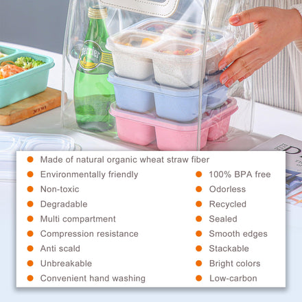• 【Microwave, Freezer, Dishwasher Safe】:These wheat straw food storage bento boxes can tolerate a broad range of temperature from -4°F to 248°F (-20℃ to 120℃). The meal prep containers reusable is convenient to open and store frozen foods for long-term meal plans. The lid needs to be removed and hand wash please for avoiding deformation by high pressure when heating in the microwave and washing in the dishwasher