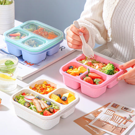 • 【Wheat Straw Bento Box 】: The 3-compartment bento lunch box is made of durable wheat straw and food grade PP material, BPA free, no odor, stain-resistant. This is a stackable bento box adult lunch box that can replace disposable lunch boxes, sturdy and reusable, easy to clean. It is a great lunch box containers for preparing healthy meals and snacks for school, work or going out