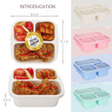 • 【Cost-effective Snack Containers Pack of 4】:You will receive bento lunch box pack of 4, with 4 colors in total: pink, beige, blue and green. The size is approximately 6.1 x 6.1 x 2.2inches. Sufficient quantity and style of lunch containers can meet various daily needs, three perfectly portioned compartments can balanced distribution of food without confusion. Snackle box containers suitable for school, office, camping and travel