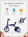 • First Toddler Tricycle: This tricycle for toddlers is great for beginner riders, designed for 18 months to 5 year old toddler girls & boys who are curious and excited to explore the world, to develop kids' steering skills and coordination at an early age
