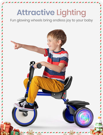 besrey Kids Tricycle with Flash Wheels for Ages 18 Months to 5 Years, Toddler Tricycle with Bell, Kids Tricycle, Gift for 2-5 Year Olds, Gift and Toy for Boys and Girls, Tricycle for Toddlers, Blue
