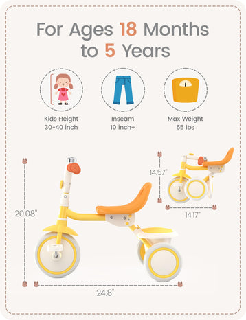 • 2-IN-1 Thoughtful Design: This toddler bike effortlessly transitions between riding and folding modes, offering endless adventures and ultimate convenience for storage and transport—a perfect companion for on-the-go families