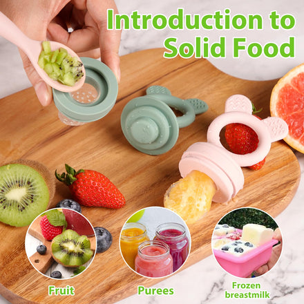 Bessentials Baby Fresh Fruit Food Feeder - 2 Pack Silicone Baby Mesh Feeders for Infant Safe Self Feeding |3 Sizes Food Pouches Included| Suitable for Baby 4m+ (Light Pink & Grass Green)