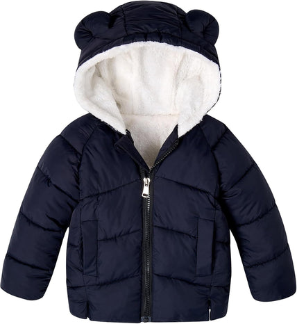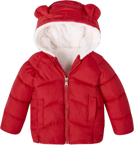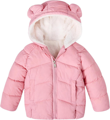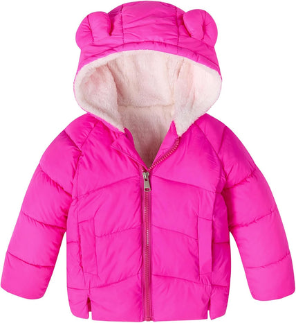 • Baby Winter Jacket: This quilted puffer jacket for baby girls/boys is perfect for winter activities and casual wear, this extra warm and comfortable toddler and infant winter coat has Fleece lining, a puffer with cute ears on top, and two pockets