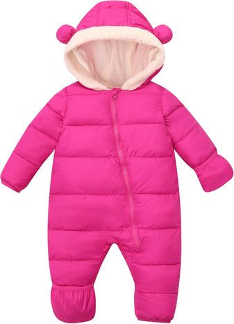 • Fashion Features : The baby snowsuit have warm hood and optional mittens, allow your baby's hand and footies to be out or covered depending on the weather