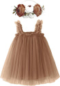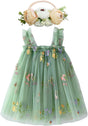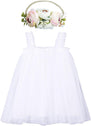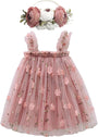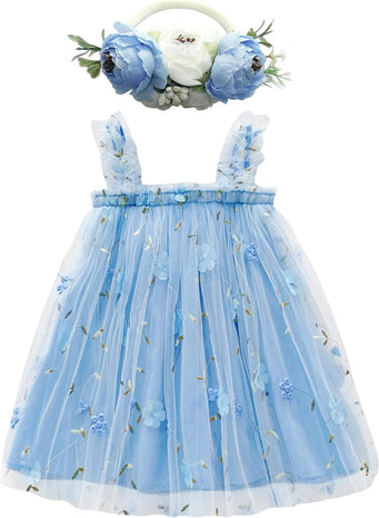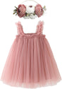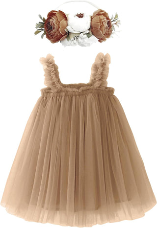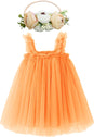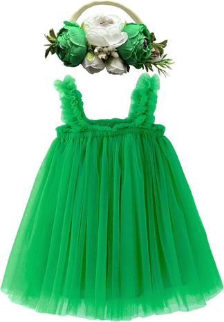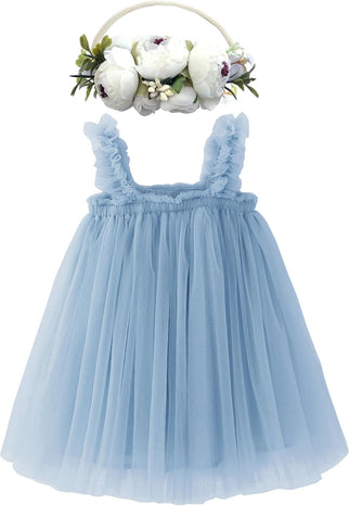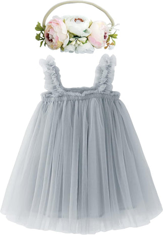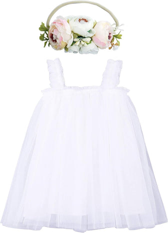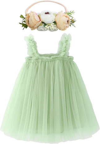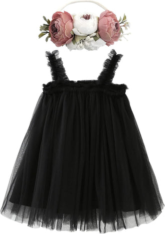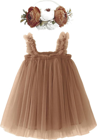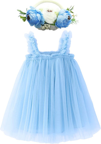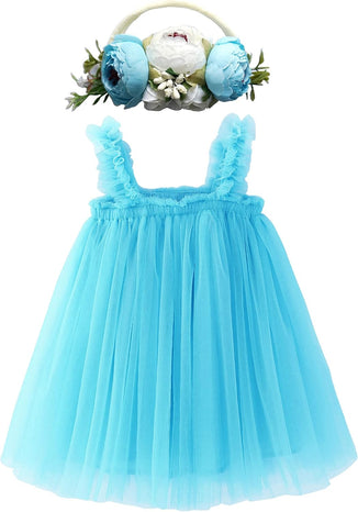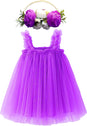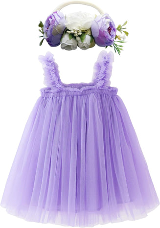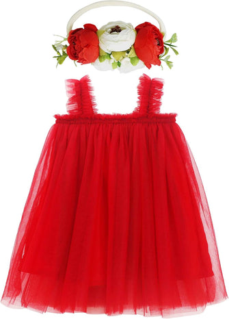 • ♥The tutu dress made by soft and fluffy tulle with lining which is very comfortable.Elastic Shoulder strap can fit baby girls perfectly.The headband made by 5 pieces different artificial flowers which is very pretty for baby.