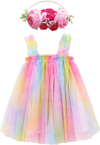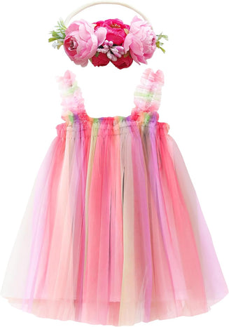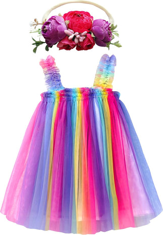 BGFKS Layered Tulle Tutu Dress for Toddler Girls,Baby Girl Rainbow Tutu Princess Skirt Set with Flower Headband.