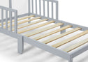 The Birdie toddler bed from Olive & Opie is as simple and sophisticated as the birdie starling. Striking finishes that complement the solid panel white headboard and a low profile footboard; designates Birdie as the perfect nesting spot for your toddler. Complete with dual side guardrails for security at night. The Birdie also features a solid wood frame; solid slat rails; and secondary support leg for extra durability.