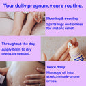 • Botanical Ingredients: Naturally derived formulations with refreshing botanicals in the leg spray, deeply nourishing balm, and skin-conditioning oil to support stretching skin.