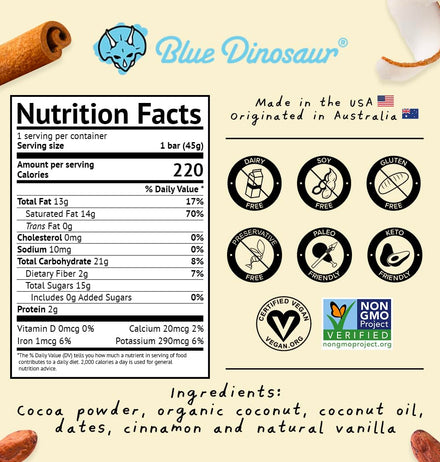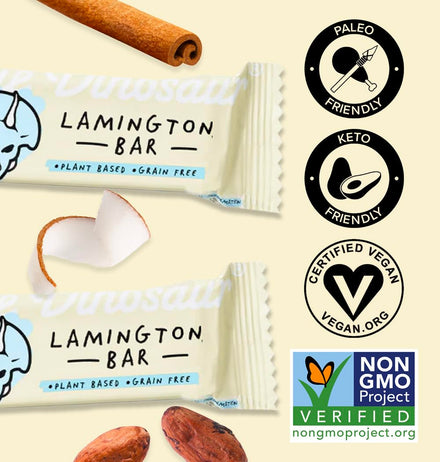 Blue Dinosaur Australian All Natural Snack Bars - Only 5 REAL Ingredients | Paleo, Vegan, Keto, Gluten Free Bars | Non-GMO High Protein Bars, Original Australian Granola Bars | Lamington, 12 Pk