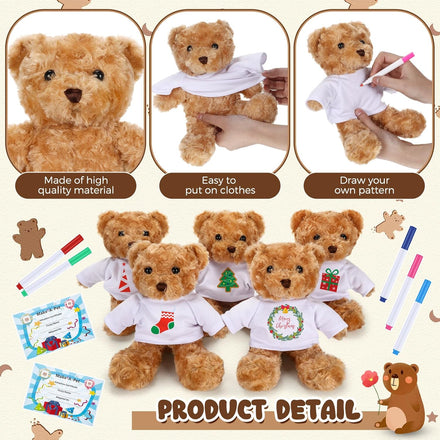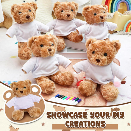 • Interactive Coloring Accessory: this product goes beyond a standard bear, offering a novel interactive design feature; Each bear comes complete with a plain white T shirt, suitable for decorating using the included 12 colors graffiti watercolor pens; With each shirt measuring 9.84 inches/ 25 cm, it's a canvas waiting for your child's design