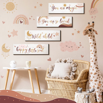 • Inspirational Theme: there are words of [Happy little soul], [you are magic], [you are so loved] on the boho bedroom decors, which can bring you a positive heart suggestion and create an upward and motivational space atmosphere