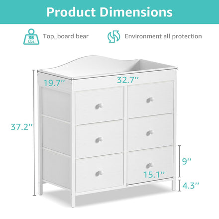 • Large Changing Top Space: Overall dimension is 32.7"W x 19.7"D x 37.2" H, 19.7’’ wide are large enough space to change diaper,drawer dimension is 12’’W*16.9’’D*9’’H, perfect height for adult