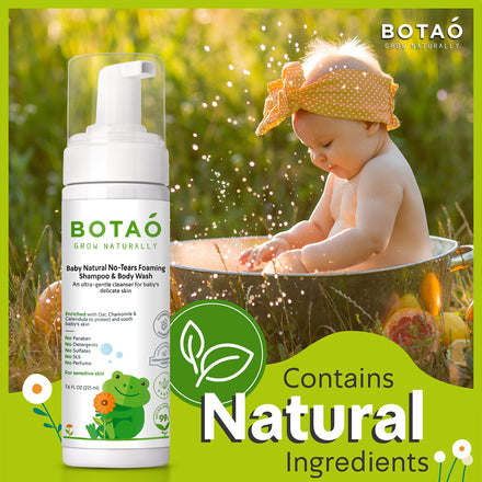 BOTAO Baby Sensitive Tear Free Foaming natural Shampoo & Body Wash – Fragrance Free 99% Natural Ingredients Ultra Gentle Vegan Baby Shampoo & Body Wash