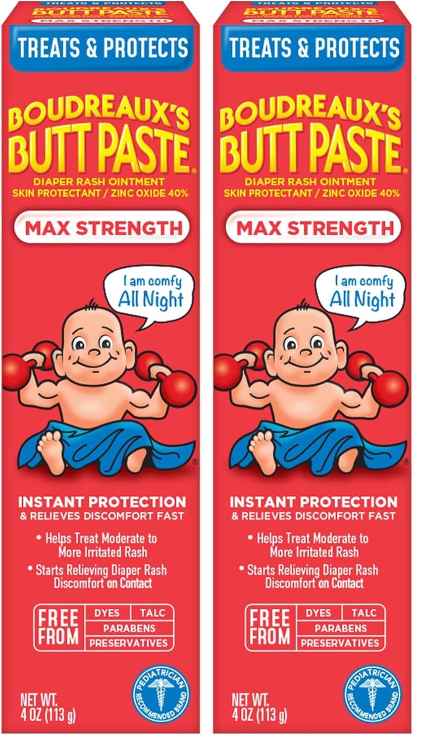 Boudreaux's Butt Paste Maximum Strength Diaper Rash Cream, Ointment for Baby, 4 oz Tube