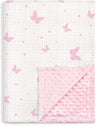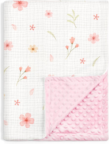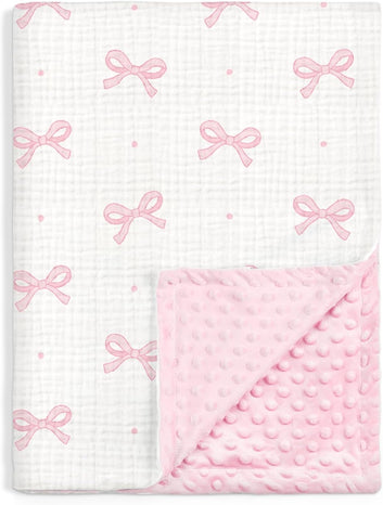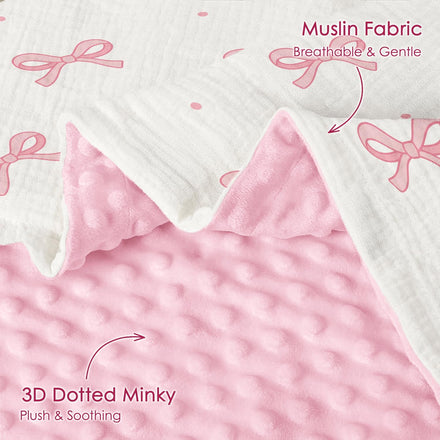 Bow Baby Blankets for Girls, Soft Nursery Minky Blankets with Muslin and Dotted Fleece Back 30x40 inches, Receiving Bed Quilt for Newborn, Infants, Toddlers