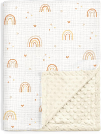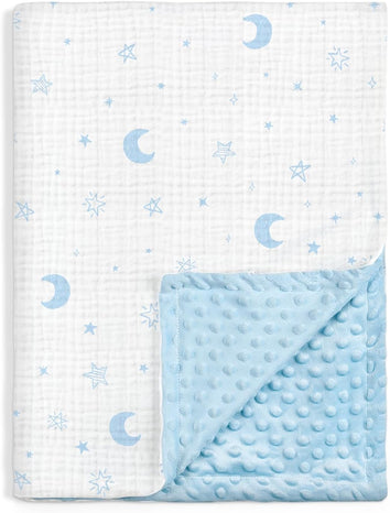 • Soft and Breathable: With a double-sided design, this blanket showcases ultra-soft, skin-friendly muslin cotton on one side and a cozy dotted fabric on the other. You can choose your preferred side, ensuring your little one stays comfortable and cool during the warm summer days