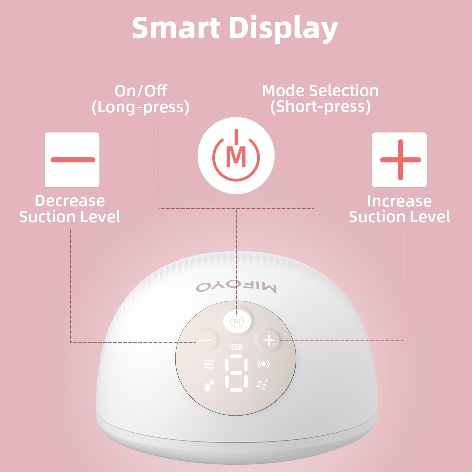 • Smart Display & Low Noise:Designed with a digital display to monitor suction levels, MIFOYO breast pump operates at a low noise level of just 50dB. You can pump beside a sleeping newborn, during late-night, or in quiet office corners without anyone noticing. Discreet LED indicators and a soft silicone seal ensure silent, stress-free sessions that respect your privacy and your baby’s rest.