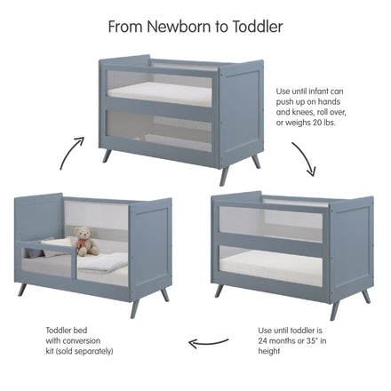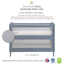 BreathableBaby Breathable Mesh 3-in-1 Convertible Crib (Toddler Bed Kit Sold Separately) — Steel Gray — Two Adjustable Mattress Heights — Greenguard Gold Certified
