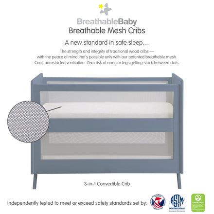 Details: Say hello to the Breathable Mesh 3-in-1 Convertible Crib. It combines the strength and integrity of traditional wood cribs with the peace of mind that’s possible only with our patented breathable mesh. Only from BreathableBaby, of course.
