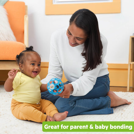 Details: What's got baby all shook up? The easy, squeezy Oball Rattle by Bright Starts! Designed to be easy to grasp for even the littlest fingers, this baby toy encourages the development of fine motor skills with every shake. There are 29 total finger holes, so even inexperienced fingers can hold on tight and shake with everything they've got! Your baby will love watching the bright beads inside each rattle clickity-clack with every shimmy and shake. Toss these award-winning ball rattles into your diaper bag and keep them on hand wherever you go. Your little noisemaker will always have a ball!