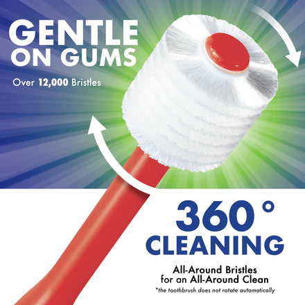 • ROUND HEAD – 360° round brush head that effectively cleans teeth, tongue, gums, cheeks and all the hard-to-reach places