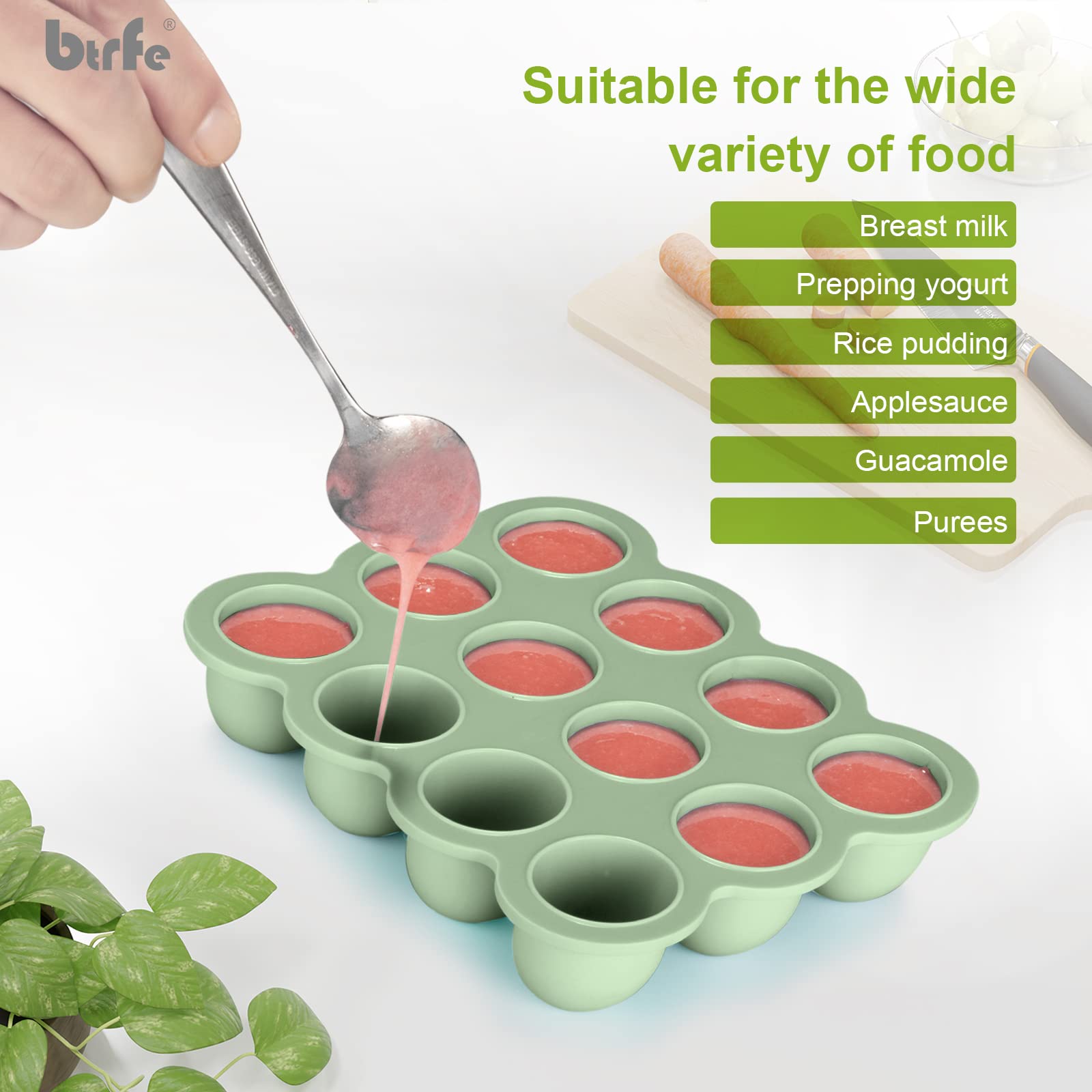 btrfe Baby Food Storage Container - 1.5oz x 12 Pods Silicone Freezer Tray with Lid for Homemade Baby Food, Fruit Purees, Vegetable & Breast Milk (Green)