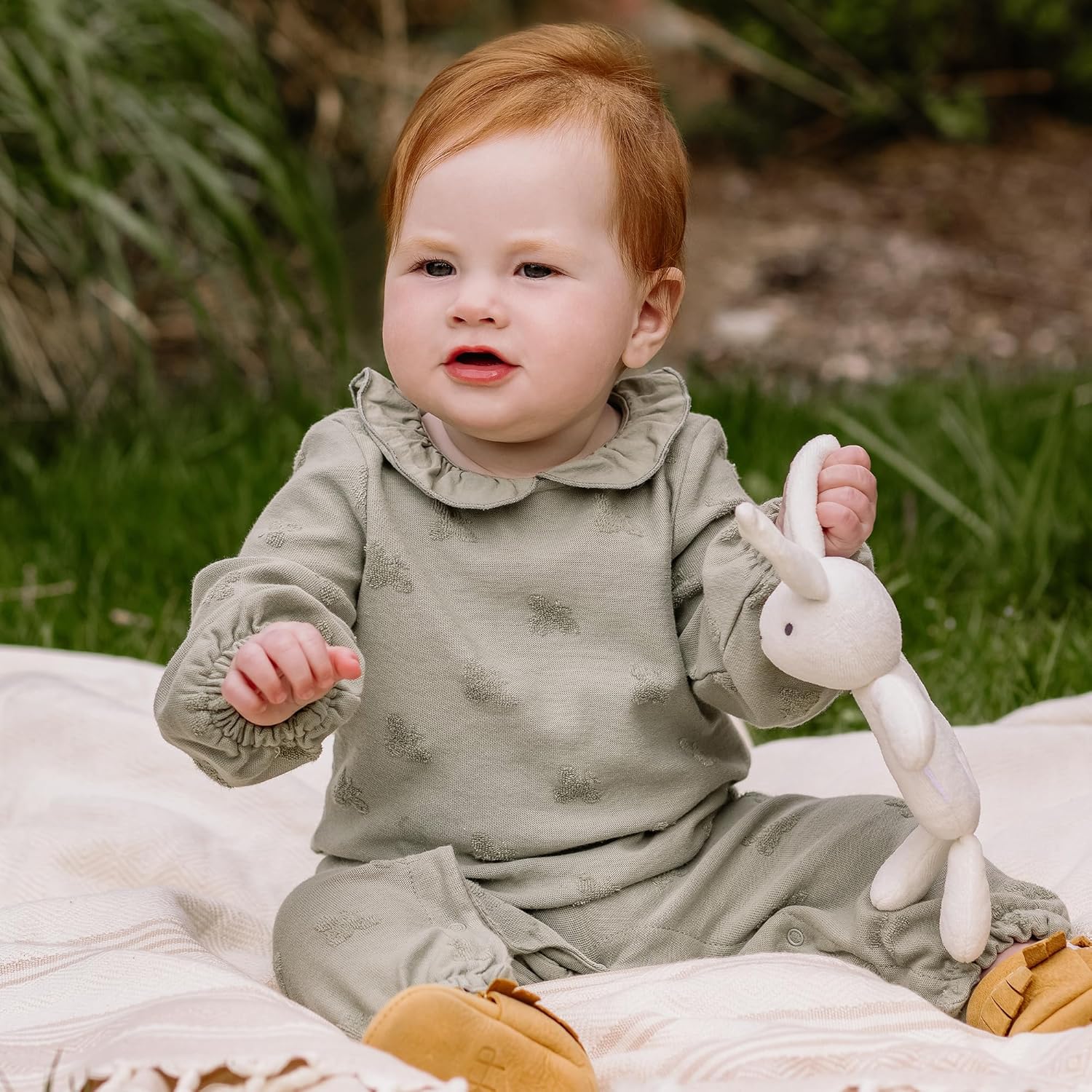 • Variety of Playmates: Choose between the cuddly bear, the floppy-eared bunny, or the playful dog. Each offers a unique play experience, fostering imagination and companionship. This baby stuffie is made of 100% organic cotton with 100% polyester fill.