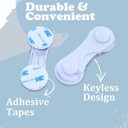 • Easy To Install: This baby proofing gadget comes with adhesive tapes, easy to install. Just need to peel off the film of adhesive and stick the child lock on the cleaned surfaces of door, no drills or tools needs, The installation process is very simple.