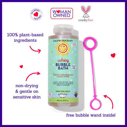 California Baby Calming Lavender Bubble Bath | 100% Plant-Based Kids Bubble Bath | Gentle Baby Bubble Bath | Free Bubble Wand | 384 mL / 13oz