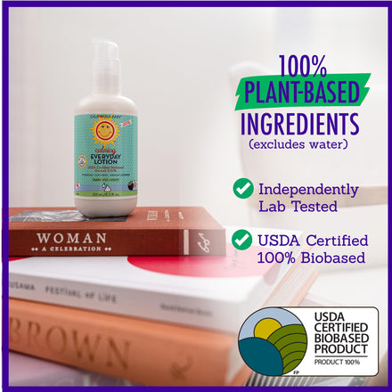 • 100% PLANT-BASED - BEST BABY LOTION FOR SENSITIVE SKIN: This body + face moisturizer is USDA Certified 100% Bio-Based, meaning all ingredients are 100% plant-based. Voted best baby lotion sensitive skin. Free of petroleum ingredients.