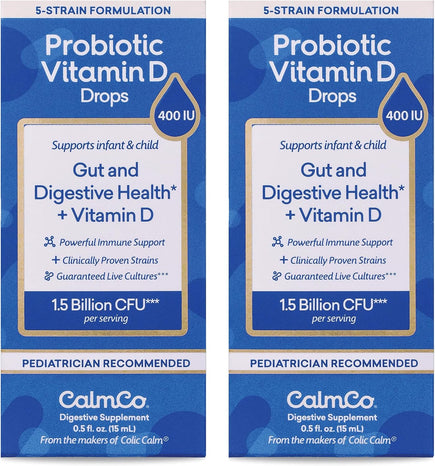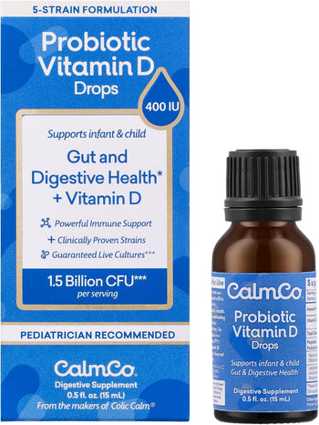 CalmCo Probiotic Vitamin D Drops - Supports Infant & Child Gut Health, Helps Reduce Gas, Colic & Fussiness, Baby Probiotic Drops with Vitamin D3, Pediatrician Recommended, Unflavored, 15ml (Pack of 1)