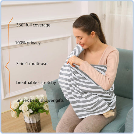 Because of the top hole design, so peeking in on your little one is simple and can be done quickly so you don't wake the baby! That's one reason why our Multi Use Covers are the go-to choice for any baby shower. Our breathable and stretchy multi-use cover provides a 360° degree coverage for all new breastfeeding moms to feel confident and enjoy the special moment with your little one. Your baby may even fall asleep after feeding as it is so comfortable to be under the cover.