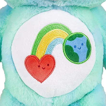 • MADE USING RECYCLED MATERIALS - With his motto "Love the Earth," I Care Bear's beautiful super soft plush not only reflects the colors of the land and sea, but was created specifically using recycled materials.