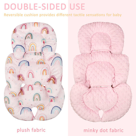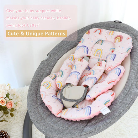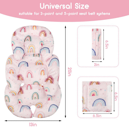 CARUILI Infant Car Seat Insert Cushion, Super Soft Baby Car Seat Head Support & 2 Straps Pads, Reversible Preemie Newborn Carseat Insert, Fit Car Seat, Stroller, Infant Bouncer, Pink Rainbow