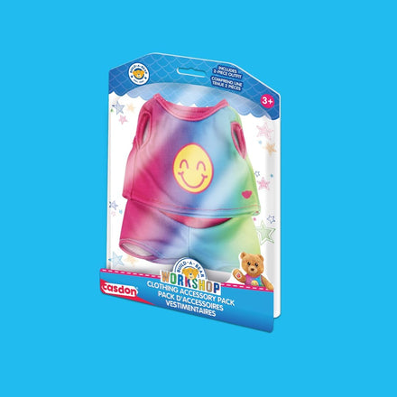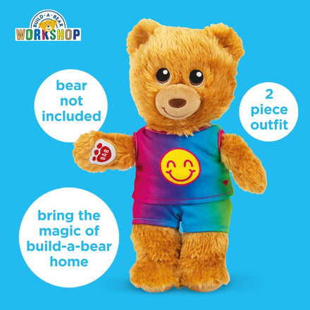Casdon Build-A-Bear Workshop Rainbow Smiley Toy Clothes Pack | 4 Mix-and-Match Toy Outfits Includes Pajamas, Cute Hoodies & Summer Styles | Dress-Up Toy Clothes for Kids Aged 3+ | Suitable for 9" Bear