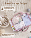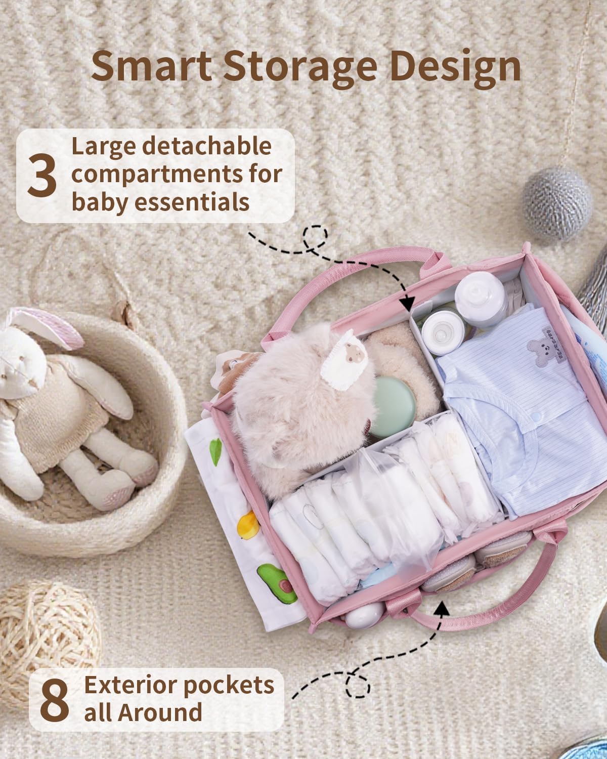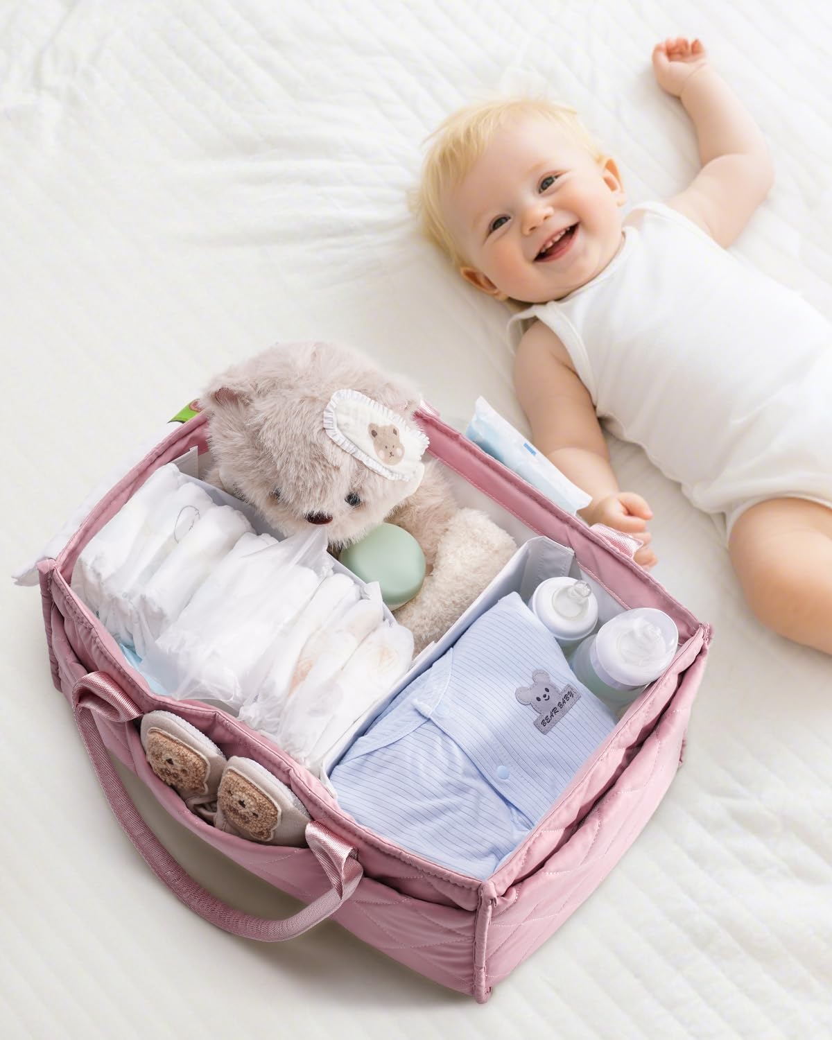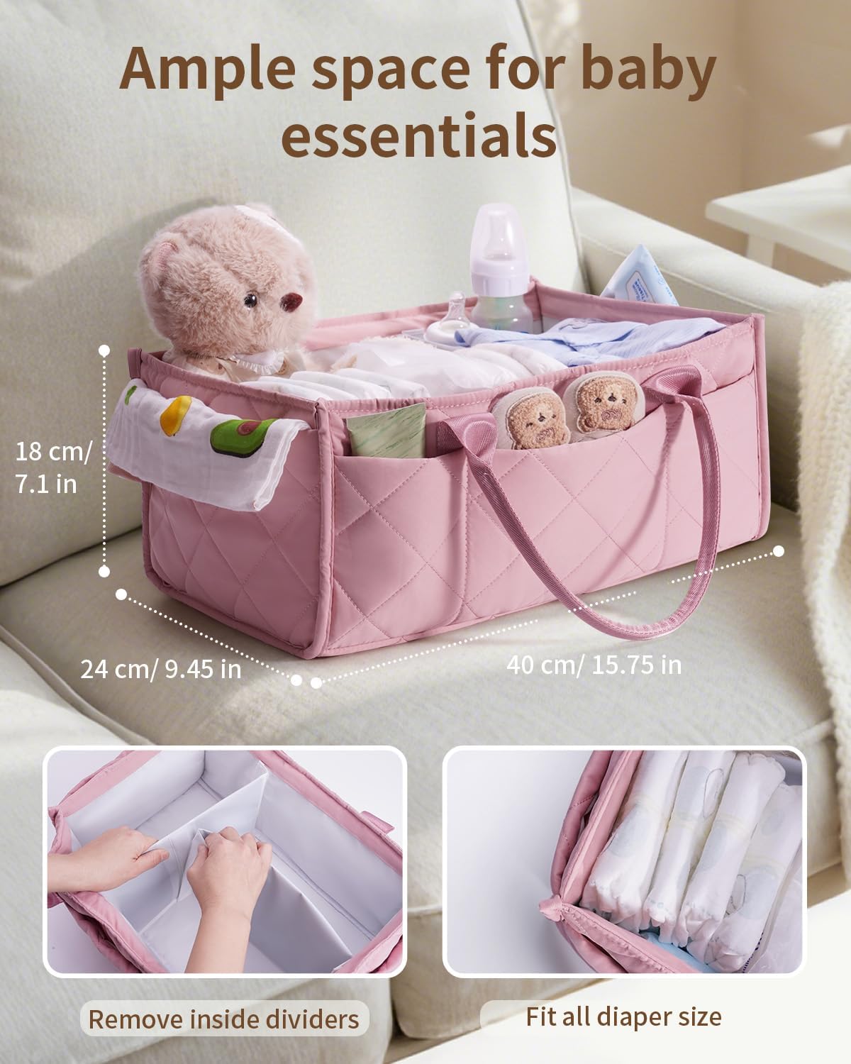 - Customizable Storages: This Diaper Caddy Organizer features 2 adjustable, removable dividers for easy organization of newborn essentials like diapers, bottles, and baby clothes. With its large capacity, everything stays neatly organized and accessible