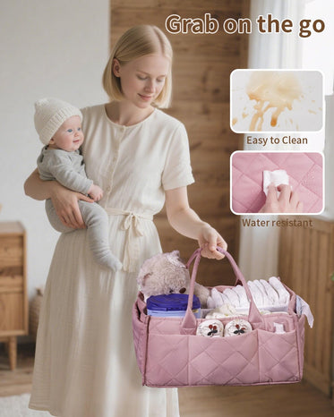 - Durable & Waterproof: Made from soft, durable fabric with a waterproof lining, this baby caddy keeps your baby's essentials dry and protected. Its sturdy construction ensures long-lasting use, making it a reliable choice for everyday storage needs