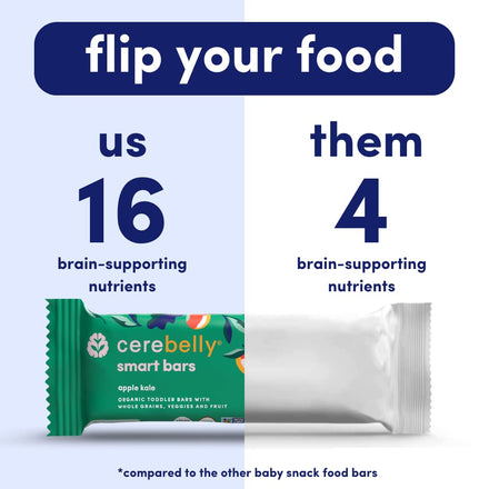 Cerebelly Toddler Snack Bars – Organic Apple Kale Smart Bars (Pack of 5), Healthy Snack Bars for Kids - 16 Brain-supporting Nutrients