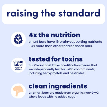 • SCIENCE BACKED NUTRITION: Our Smart Bars were created by practicing neurosurgeon, Stanford PhD in developmental neurobiology. With tasty ingredients and science-backed nutrition, our bars are the best snack for your child’s growing brain.