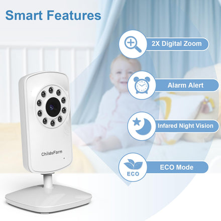 • 【Infrared Night Vision & All Day Caring】ChildsFarm baby monitor offers infrared night vision, allowing you to see your baby clearly in complete darkness. It automatically switches to night vision mode, ensuring uninterrupted monitoring of your baby's sleep. Whether it's day or night, Childs Farm provides continuous monitoring for your peace of mind and all-day care.