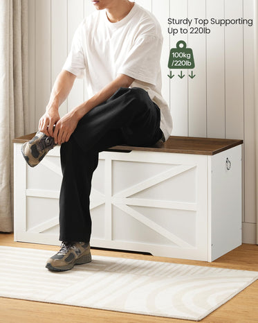 - Framed Style and 2-Color Aesthetic: The framed front design and bi-color rustic charm of this toy chest add warmth to your home decor. Effortlessly blending into modern minimalist or country-style settings, it showcases the owner's unique taste