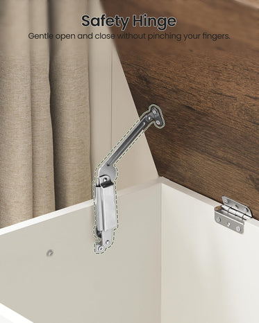 - Sturdy Support and Safety Hinge: Crafted with premium boards and metal fittings, this toy chest boasts a 220 lb on its top for durability. The safety hinge and U-shaped cutout prevent finger pinching, adding extra protection for your daily use