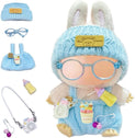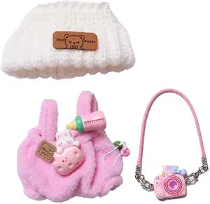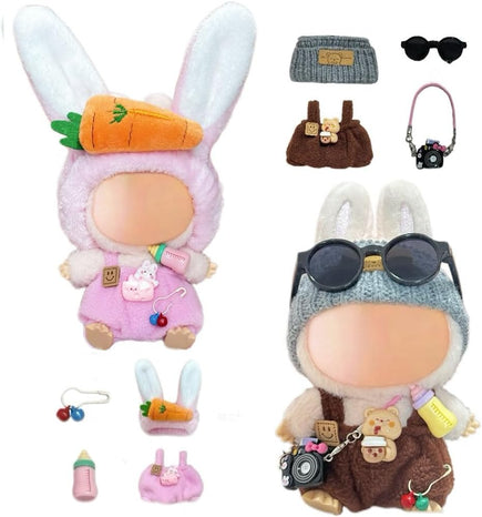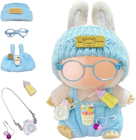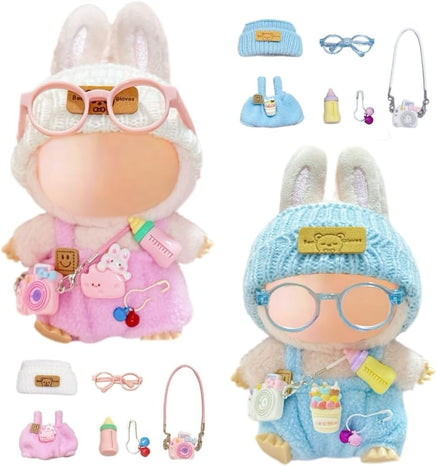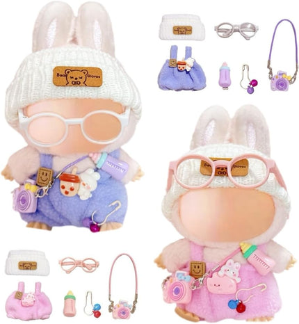 • ACCESSORY DETAILS: 17cm doll outfit for labubu includes matching knitted beanies with cute bear logo patches and round-frame glasses in coordinating colors