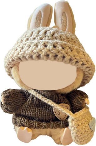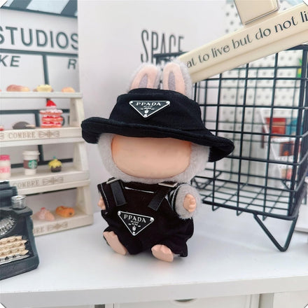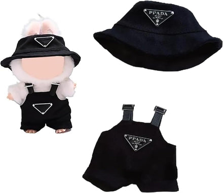 Clothes for Labubu(NO Doll) , Hat & Overalls Set for Labubu Clothes 15cm/17cm Doll Accessories Suit, Doll Outfit Stylish Doll Clothes for Doll (Black)