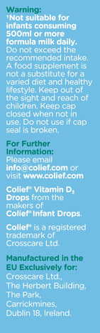• EASY TO USE Colief Vitamin D3 Drops can be mixed with food or a drink. In the case of babies, they can also be given the drops directly by mouth.