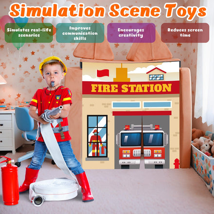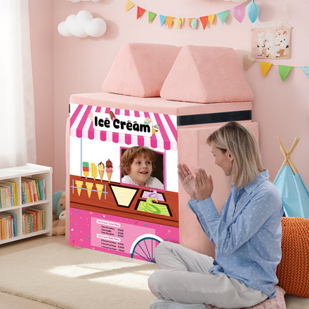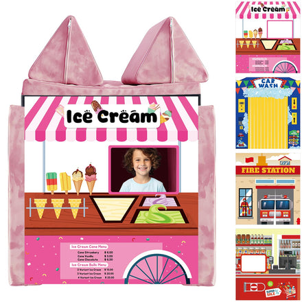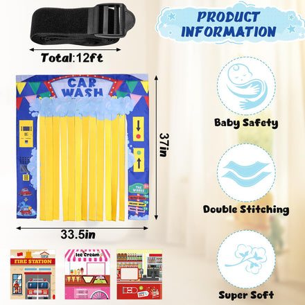- Four-Themed Play Panels: This imaginative play panel includes 4 themed panels: Car Wash, Ice Cream Shop, Supermarket, and Fire Station (each 33.5” x 37”), plus a 12ft adjustable strap. Designed for acting, it inspires kids to create actual scenarios that build communication, originality, and social skills. (Note: Play sofa not included)